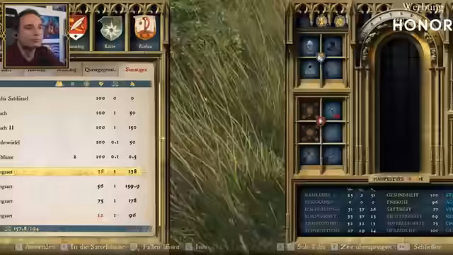 01:01:00Der Streamer vergleicht das Magdeburger Schwert mit dem Schwert des Herodes und fragt die Zuschauer, welches sie nehmen würden. Er erklärt die Vor- und Nachteile beider Schwerter und berücksichtigt dabei auch das Charisma. Er verkauft alle anderen Schwerter, die er hat, und entscheidet sich bewusst dagegen, jedes einzeln zu schleifen, da der Ehrenheinrich reich ist und sich den Aufwand sparen kann. Er kauft Augsburger Panzerhandschuhe, stellt aber fest, dass seine aktuellen Leipa-Adelshandschuhe mit 19 Charisma viel besser sind. Er entscheidet sich für die Magdeburger Beinlinge mit 20 Charisma und verkauft seinen alten Kram dafür. Er lässt das, was er hat, reparieren und holt sich einen gescheiten Schild des Leipaar-Adels mit 150 Verteidigung und 20 Charisma.