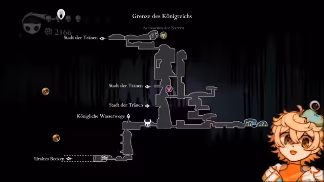 00:14:23Nachdem sich die Streamerin im Kolosseum etwas vertan hat, beginnt sie, die erkundete Karte zu analysieren und neue Gebiete zu markieren. Ihr Hauptziel ist es, den fehlenden Doppelsprung zu finden, um einen bestimmten Bosskampf zu meistern. Sie erkundet verschiedene Bereiche und stößt dabei auf Gegner, die sie umgeht, und nutzt das Crystal Dash, um unerreichbare Orte zu erreichen. Schließlich findet sie eine schlafende Gestalt, die sie mit dem Traumnagel erweckt, um einen Bosskampf zu starten.