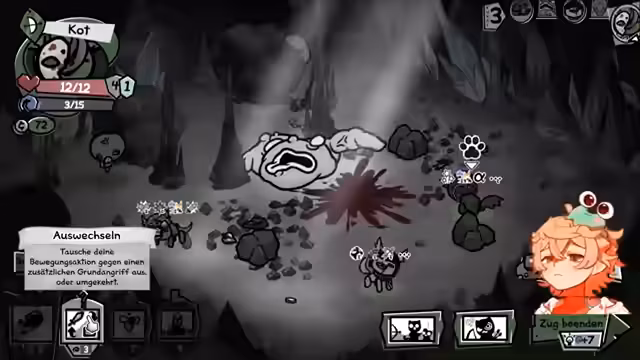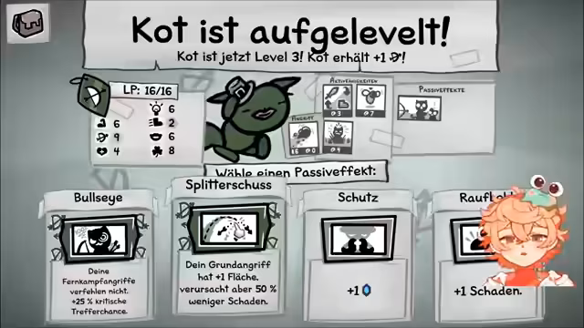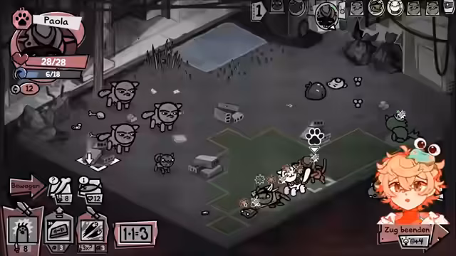 02:02:49Die Abenteuer bestehen aus rundenbasierten Kämpfen gegen verschiedene Gegner, wie Ratten und Bull-Katzen. Der Streamer testet die Fähigkeiten seiner Katzen, die in Nah-, Fern- und Magier-Klassen unterteilt sind. Es werden Strategien wie Flankieren und die Nutzung von passiven Fähigkeiten, die sich gegenseitig verstärken, erprobt. Gegen Ende des Streams werden die Kämpfe deutlich schwieriger und eine Katze geht verloren, was die Frust des Streamers über die fehlende Vorbereitung und unglückliche Umstände zeigt.