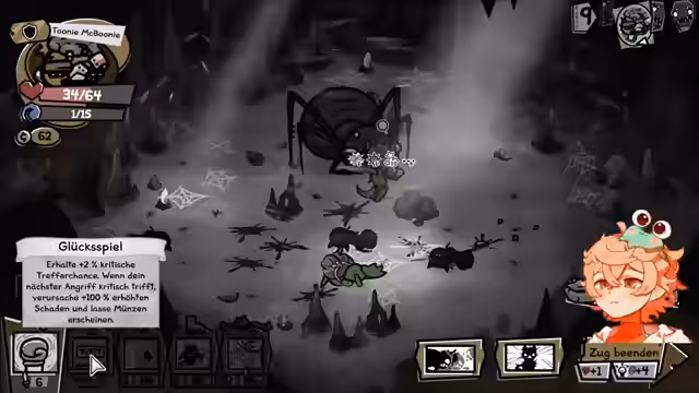 05:29:51Nach einem erfolgreichen Bosskampf gibt es im Shop reichlich Auswahl. Ein Begleiter namens 'Rattenhals' und ein Gegenstand, der 'freundliche Köttel' beschwört, werden gekauft. Bei der Verteilung der Ausrüstung stellt der Streamer fest, dass eine Katze nur noch wenig Leben hat und die Heilung knapp wird. Die Entscheidung wird getroffen, die Heilung für die schwächste Einheit einzusetzen, um das Team am Leben zu erhalten.