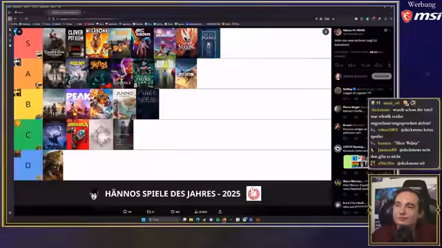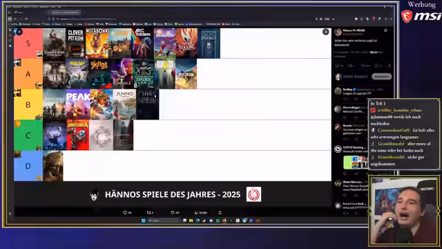 00:18:03Henno ruft an und es folgt ein Austausch über die persönlichen Game-Awards-Rankings. Beide stimmen bei Enttäuschungen wie Monster Hunter Wilds (Performance-Probleme, schwache Story) und Borderlands 4 (fehlende Innovation, enttäuschende Grafik für den Preis) überein. Kritik wird am CEO von Borderlands geübt wegen unnötiger Arroganz. Civilization 7 wird als zu hart auf C platziert kritisiert, wobei Spielmechaniken wie der ständige Wechsel der Kulturen als emotional unbefriedigend bewertet werden.