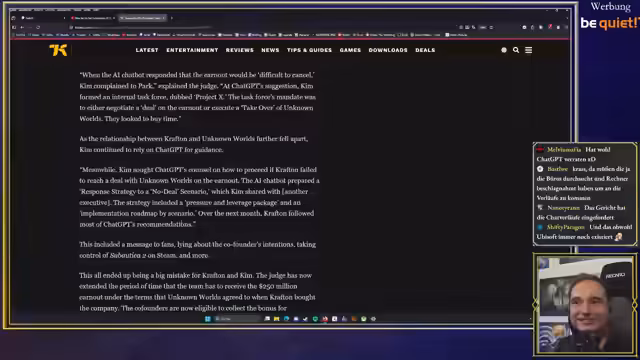 00:50:55Eine besonders absurde Enthüllung des Gerichtsprozesses ist die Verwendung von ChatGPT durch den Crafton-CEO. Um eine Strategie zur Vermeidung der Bonuszahlung zu entwickeln, befragte er die KI. ChatGPT warnte ihn mehrfach, dass das Feuern der Entwickler rechtlich riskant sei, dennoch folgte der CEO den Empfehlungen. Die KI unterstützte ihn bei der Entwicklung einer Lügenkampagne, dem Aufbau einer Taskforce und der Übernahme der Steam-Seite. Der Vorfall zeigt, wie AI in unternehmerische Machenschaften verstrickt wurde.