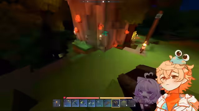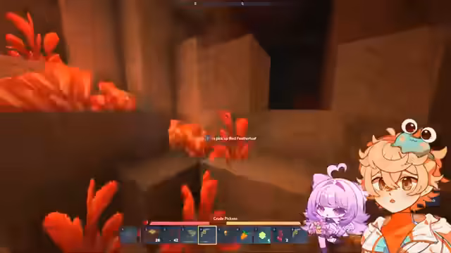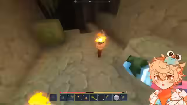 01:02:01Der Streamer erkundet mit Atrax eine unterirdische Höhle und sammelt Kupfer, Eisen und andere Rohstoffe. Sie stellen fest, dass die Vorkommen begrenzt sind und diskutieren die Notwendigkeit von mehr Material für Rüstungen und Werkzeuge. Während der Erkundung finden sie eine Geode mit roten Kristallen und stoßen auf frühe Monster wie Spinnen und Murlocs. Die Interaktion und das Crafting von Spitzhacken und anderen Werkzeugen imitiert Minecraft, wobei jedoch Schwächen im Spielgefühl, etwa beim Abbauen von Blöcken, diskutiert werden.