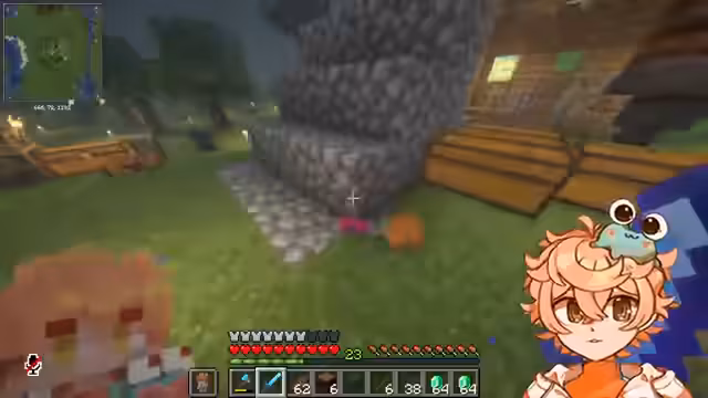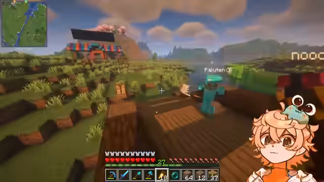 01:43:30Der Streamer berichtet davon, an einer bestimmten Stelle mehrmals sein Totem verloren zu haben. Auf Nachfrage stellt er fest, dass sein Inventar keine Federvall-Verzauberung enthält. Die beiden diskutieren über den Aufbau einer XP-Farm, bei der festgestellt wird, dass es zwar bereits Trading Halls gibt, aber noch keine XP-Farm installiert ist. Dies zeigt den fortgeschrittenen Spielstand und den stetigen Wunsch nach Optimierung und Ausbau der Basis.