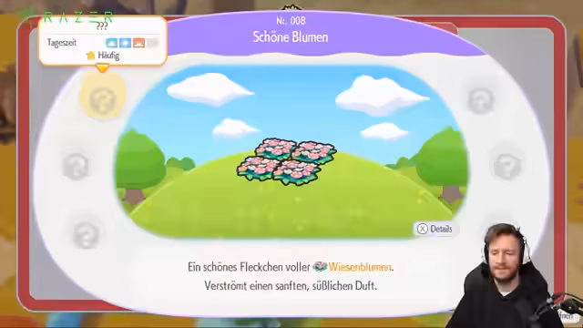 00:52:20Neben dem Bau von Habitaten erforscht der Streamer weitere Spielmechaniken. Das Fotografieren von Pokémon mit dem Pokédex und die Nutzung von Gegenständen wie einer CD zur Abwechslung werden getestet. Auch die Herstellung von alltäglichen Gegenständen, wie etwa aus Blättern gefertigte Bettgestelle, ist Teil des Gameplay, um das Wohlbefinden und die Zufriedenheit der Pokémon zu maximieren.