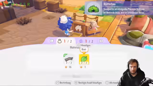 03:04:19Der Streamer beginnt mit dem Bau eines Pokémon-Centers und eines Blätterhäuschen-Bausatzes. Hierfür benötigt er das Talent 'Plattwalzen' und muss dafür eine Mission in einer Höhle voller Fellen bestehen. Gleichzeitig sucht er nach Helfer-Pokémon, um die Bauvorhaben zu realisieren. Das Ziel ist, ein Arztgebäude und weitere wichtige Strukturen in der Traumstadt zu errichten.