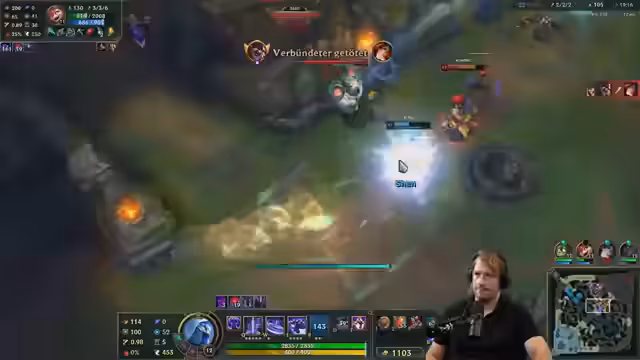 05:15:29Hier geht es um die praktischen Gameplay-Entscheidungen während des Spiels. Der Streamer analysiert Situationen in der Botlane, spricht über Invasionen in den Jungle und diskutiert seine Positionierungsstrategien. Er beschreibt Kämpfe, Entscheidungsfehler wie falsches Timing von Fähigkeiten und die Konsequenzen davon. Besonderes Augenmerk liegt auf der Kommunikation mit Teamkollegen und der Einschätzung von Bedrohungen durch Gegner-Champions wie Shaco und Timo.