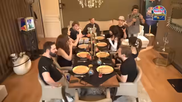 01:23:31Nachdem Tobi ein leckeres Dinner zubereitet hat, startet offiziell das Elden Ring-themed Dinner-Event. Die Teilnehmer bilden deutsche Teams und müssen Elden Ring sowie allgemeines Trivia beantworten. Das Dinner besteht aus mehreren Gängen, die sich an das Spiel anlehnen, darunter rote Speisen mit Wodka, die an Zutaten aus dem Spiel erinnern. Begleitet wird das Dinner von Vorstellungen des Spiels 'Elden Ring Night Reign'.