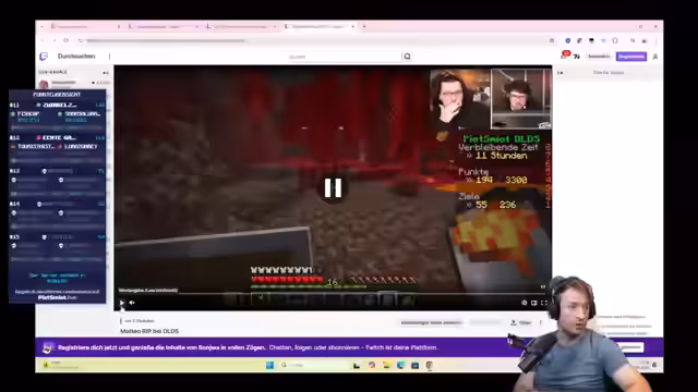 00:12:32MaximGHG erklärt seinen Plan für das bevorstehende DLDS-Event, bei dem er zusammen mit Holla in einem Team antritt. Das Ziel ist es, von 15 bis 23 Uhr auf dem Server von Pete Smith Achievement Hunting zu betreiben. Je mehr Achievements sie erreichen, desto besser. Es gibt Punkte für verschiedene Aufgaben, von einfachen Dingen wie Angeln bis hin zu großen Herausforderungen wie das Besiegen des Enderdrachen. Das Spiel wird im Hardcore-Modus gespielt, was bedeutet, dass der Tod permanent ist. Holla soll ihn zurückhalten, damit er nicht alles gewinnt. Es werden Fragen zum Event beantwortet, darunter erlaubte und verbotene Modifikationen (Minimaps, Freecams, dynamisches Licht sind verboten, Optifine und Sodium sind erlaubt), Team-Befehle und die Größe der Map (10.000 x 10.000 Blöcke). Man darf sich nachts oder kurz vor dem Tod ausloggen, aber Spawner dürfen nicht abgebaut werden. Es wird auch besprochen, wie man sich vor dem Tod in Lava retten kann, indem Holla Wasser platziert oder ein Trampolin aus Betten baut. Es gibt auch ein OBS-Overlay, das man einbauen kann, um die Achievements zu tracken.