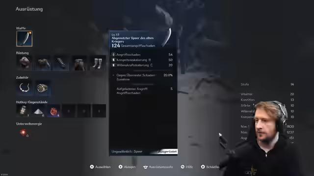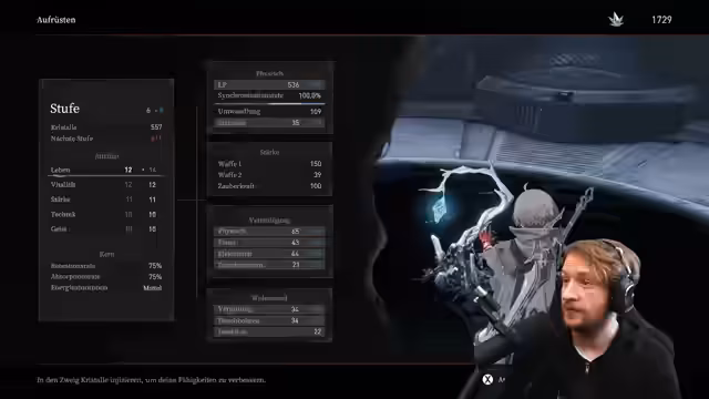 02:39:48Beim Charakterbau entscheidet sich der Streamer für den klassischen Souls-like Ansatz: 20 Vitalität und 20 Ausdauer. Er findet den Damage-Anstieg unklar und magisch. Das Spiel wird mit Nioh verglichen, aber mit mehr Fokus auf Parry. Die Fertigkeiten wie Impulsangriffe, Gegenangriffe und das Parieren sind komplex und einsteigerfreundlich. Die Bewegung wird als smooth, aber trotzdem wuchtig gelobt, was nur wenige Souls-like-Spiele hinbekommen. Die Musik und das Ambiente werden ebenfalls als positiv erwähnt. Er testet verschiedene Waffen, darunter einen Speer, und findet die Kombomöglichkeiten sehr interessant.