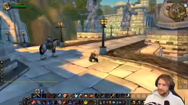 01:15:03Der Streamer erreicht Stormwind und ist beeindruckt von der Größe der Stadt. Er versucht, sich zu orientieren und findet den Handelsdistrikt. Er spricht mit verschiedenen NPCs und nimmt Quests an. Er erwähnt, dass es viele interessante Orte und Charaktere in der Stadt gibt. Er vergleicht Stormwind mit anderen Städten in WoW und erinnert sich an die Lore hinter der Stadt. Er bemerkt auch, dass es viele Spieler gibt, die Classic spielen, was er etwas seltsam findet.
