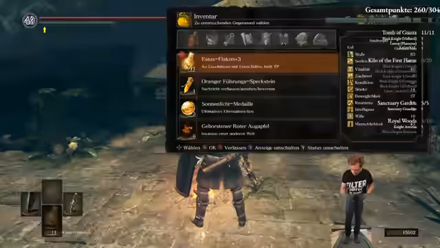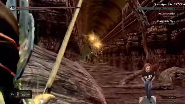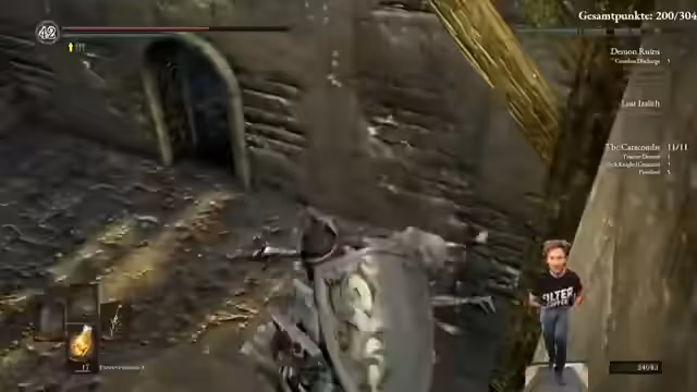 02:15:27Vor dem Einstieg in die Dark Souls-Phase des Streams wird das Kamerasetup optimiert, da das Bild des Vortages nicht zufriedenstellend war. Nach einigen Anpassungen gelingt es, eine bessere Bildqualität zu erreichen. Das Gameplay beginnt in Anor Londo mit dem Ziel, bekannte Bosse wie den Bogensch Kirk und den Centipeden zu besiegen, um Punkte zu sammeln. Der Streamer beschreibt seinen Zustand als ängstlich und mental erschöpft und betont die Wichtigkeit eines sicheren Spielstils, da die Gefahren groß sind und Fehler tödlich enden können.