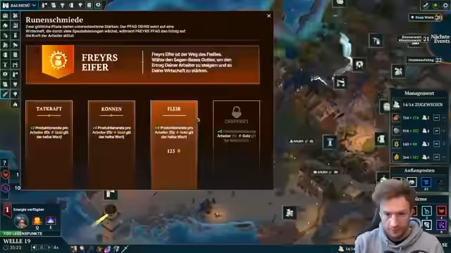 00:00:00Zu Beginn des Streams wird eine frühphase der Runde von Tower Defense gespielt. Der Fokus liegt auf der Optimierung der Turmplatzierung und Ressourcenverteilung, insbesondere Gold, Holz und Nahrung. Es werden verschiedene Tower-Typen wie Schwächungs- und Pfeiltürme getestet, um deren Effektivität zu bewerten. Strategien, um früh Gold zu generieren und die Wirtschaft zu stabilisieren, diskutiert. Hierbei ist ein balancierter Start entscheidend, um später in der Runde starke Upgrades bauen zu können.