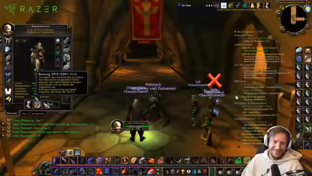 04:52:46Ein längeres Segment beschreibt das Insignien-System in den westlichen Pestländern. Spieler können dort durch Geiselsteine und Knochenfragmente Insignien eintauschen, die zum Aufwerten von Dungeon-Sets aus Stratholme, Scholomance und Schwarzfels benötigt werden. Es wird erklärt, wie man die Steine farmen kann und dass dies ein sehr grindiger Prozess ist. Der Streamer erwähnt, dass er momentan viele dieser Steine farmt und wie man sie für Ruf und XP nutzen kann, auch wenn sie seelengebunden sind.
