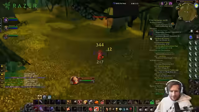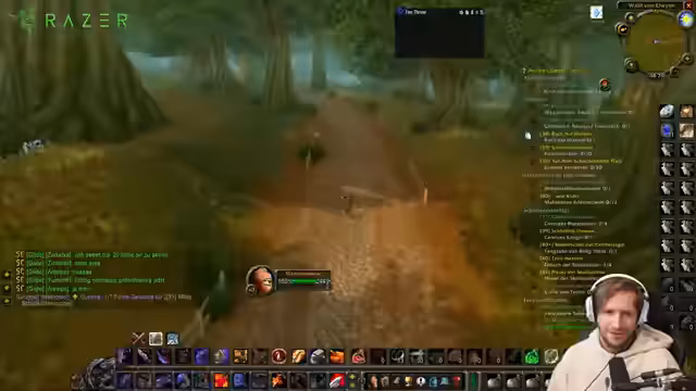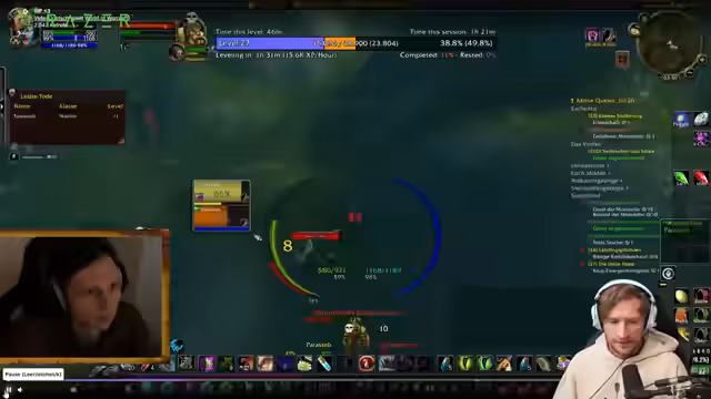 00:10:08Nach der Ankunft in den Sümpfen des Elends konzentriert sich der Streamer auf das Leveln, freut sich aber bereits auf den Erhalt des Mounts bei Level 40. Die Kämpfe gegen Ekelhafte Gespinste gestalten sich schwierig, da diese viel Magieschaden verursachen, der für den Krieger unangenehm ist. Die Analyse des Schadensverhaltens der Gegner wird intensiv diskutiert. Der Streamer erläutert, dass der Giftschaden der Spinen den Autotakt-Schaden des Kriegers übertrifft und dieser Effekt durch die Cast-Zeit der Zauber und die instantane Natur der Blutung des Kriegers verstärkt wird.