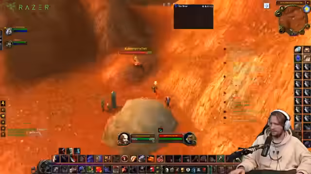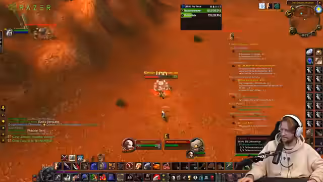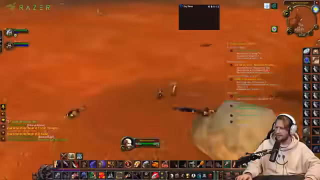 01:00:05Der Streamer diskutiert seine Erfahrungen mit dem Leveling-Prozess in WoW. Er stellt fest, dass er nach längeren Pausen besser spielt, da sein Gehirn Mechaniken aus anderen Spielen überträgt. Er gründet derzeit nur Mobs, um schnell Erfahrung zu sammeln, und ärgert sich über zwei dumme Tode, die ihn auf Level 0 zurückgeworfen haben. Dies hat zu einem zeitlichen Verlust gegenüber anderen Spielern geführt, was ihn frustriert, da er das Ziel hat, Level 60 für einen Raid zu erreichen.