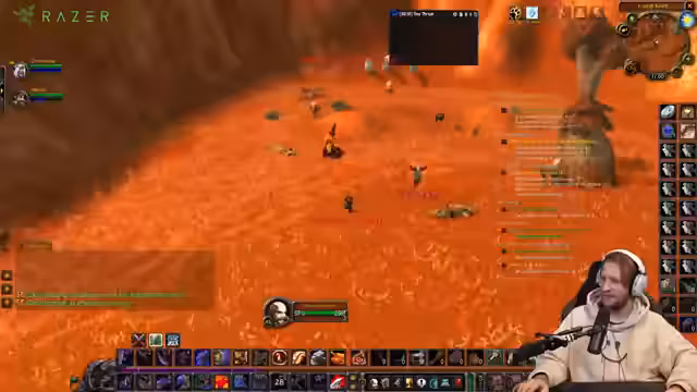 01:38:59Der Streamer erinnert sich an denepischen Raid-Kampf gegen Ragnaros im Molten Core und dessen Auftritt in späteren WoW-Expansionen. Er erwähnen humorvoll das berühmte Meme von Ragans Füßen und spricht über die Vorfreude auf den Raid. Als Priester ist er relativ unempfindlich gegenüber schlechter Ausrüstung und übernimmt gerne die Heiler-Rolle, da er als 'Bank' dienen kann, falls ein Platz im Raid frei wird.