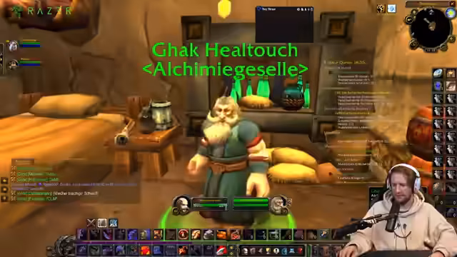 04:22:23Die Hauptbeschäftigung im Stream dreht sich um das Spielen von World of Warcraft. Der Streamer ist damit beschäftigt, Quests abzugeben und neue Gegenstände herzustellen. Dazu gehören das Mondstahlschwert und diverse Armschienen, die er auf dem Kontinent Kalimdor in der Gegend der 'düsteren Marschen' herstellt. Es wird ausführlich über die Position von Questpunkten, benötigten Rezepten und die Herstellung verschiedener Gegenstände wie Stahlschwerter und Stulpen diskutiert. Der Streamer erklärt, wie man Quests am effizientesten abkürzen kann, indem man bereits gefertigte Produkte von Gildenmitgliedern schmieden lässt, um das Sammeln von Ressourcen zu umgehen.
