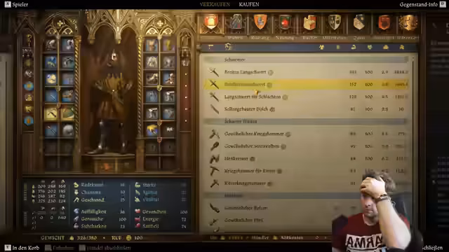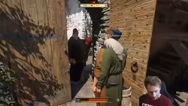02:43:12Nach dem Training wechselt der Streamer zu „Kingdom Come: Deliverance“. Er beginnt mit einer Schleichmission in der Nacht, bei der er zunächst unerkannt agiert, sich aber später für einen frontalen Überfall entscheidet. Eine Wette mit dem Chat führt zu einer bewaffneten Konfrontation, bei der er und seine Begleiter fast alle sterben. Trotz der Niederlage ist der Streamer motiviert und geht in die Stadt, um sich neu auszurüsten und seine Rüstung zu reparieren.