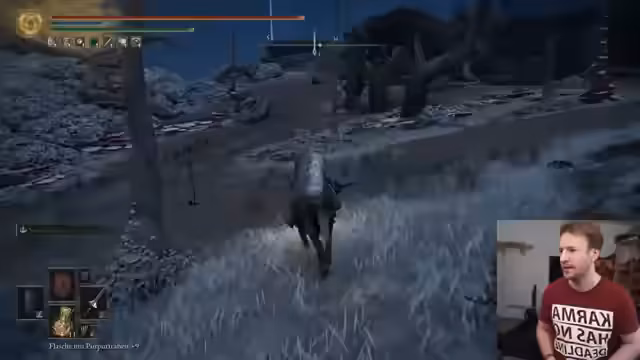 01:53:39Nach intensiven Kämpfen in Elden Ring kündigt der Streamer einen Wechsel zum Spiel Kingdom Come: Deliverance an. Er gibt an, das Spiel zunächst aus reiner Neugier testen zu wollen, obwohl es ihm anfangs zu AAA-lastig und dialoglastig erschien. Er sieht in Kingdom Come eine Art Gegensatz zu Elden Ring, da es mehr durch seine realistische Darstellung und ernsten Momente überzeugt und ihm eine andere Art der spielerischen Herausforderung bietet.