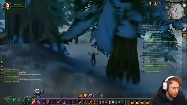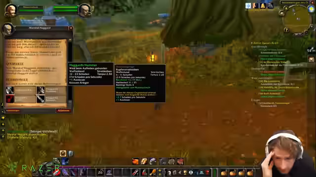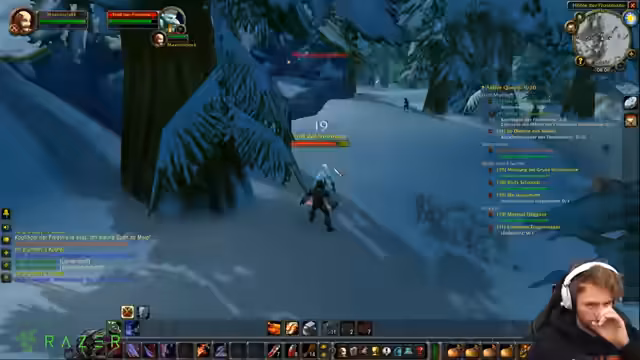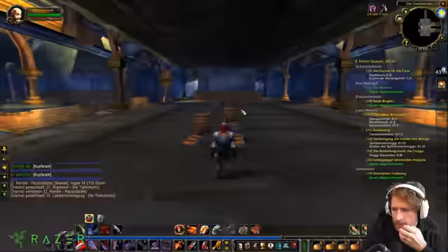02:30:48Während des Spielens diskutiert der Streamer konkrete Kampftaktiken und Quest-Strategien in WoW. Er analysiert Buffs (z.B. Mana-Brand), diskutiert Waffenwahl (Armbrüste vs. Wurfwaffen) und optimiert Stats wie Beweglichkeit für bessere Rüstung und Crit-Chancen. Dabei geht es um effizientes Leveling, etwa durch frühe Quests mit hohem XP-Ertrag. Der Streamer experimentiert mit Makros und UI-Anpassungen, um Kämpfe zu erleichtern, und lernt aus Fehlern, wie unnötigem Schaden durch Gegner-Abilities.