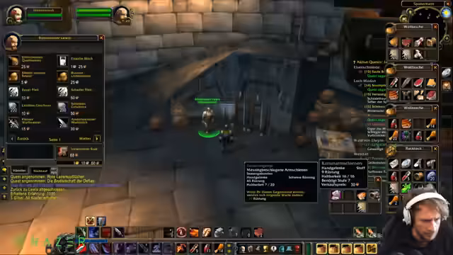 01:24:17In diesem Abschnitt diskutiert der Streamer verschiedene Ausrüstungsstrategien für World of Warcraft. Er erwägt die Verwendung von Schwertern und analysiert Rüstungsstücke wie Lederrüstung. Dabei geht es um die Abwägung zwischen Rüstungswerten und zusätzlichen Statuspunkten wie Willenskraft oder Ausdauer, die Max-HP erhöhen. Die Entscheidung fällt zugunsten von Max-HP-Boni aus, da diese als dauerhaft vorteilhaft angesehen werden. Zudem werden Herausforderungen beim Rückwärtslaufen und die Optimierung des Beutelmanagements thematisiert.
