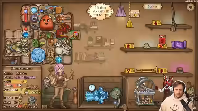 00:00:00Der Stream beginnt mit dem Begrüßungspublikum und dem Start eines neuen Spiels. Der Streamer berichtet von technischen Problemen und stellt fest, dass das Spiel-Interface sehr 'ultra-broken' ist. Nach einer kurzen Einführung in die Spielmechaniken, die das Erzeugen und Nutzen von Buffs durch Gegenstände beinhaltet, startet er direkt ins Gameplay. Er analysiert die anfänglichen Gegenstände und stellt fest, dass das Hauptproblem der Mangel an Heilung und Lebenspunkten ist, während der Schaden bereits ausreichend ist.