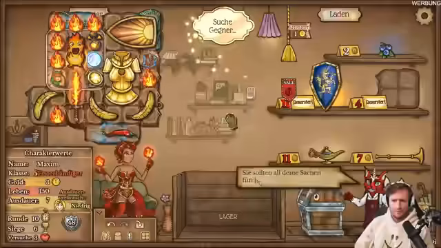 01:48:27Nach dem Sieg analysiert der Streamer den finalen Build, der auf der Rüstung und der Geschwindigkeit basiert. Das Ziel ist es, 'keine Debuffs' zu haben, um Rüstung ohne Ende zu stacken und so schneller und stärker zu werden als der Gegner. Die goldene Rüstung spielt dabei die zentrale Rolle, da sie das Spiel 'kaputt' macht. Die Siegeseuphorie ist groß, und der Streamer betont, dass dies eine 'geile Kombo' war, die ihm sehr gefallen hat, bevor der Stream endet.