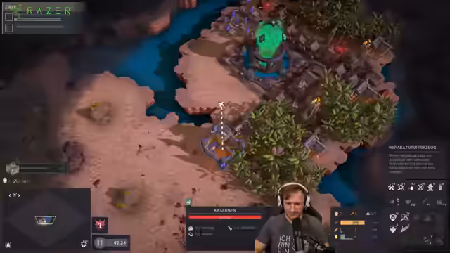 02:11:35Zu Beginn des neuen Runs wird auf einer anderen Map gespielt, die als sehr einfach beschrieben wird. Die Anfangsphase gestaltet sich jedoch holprig, da wichtige Einheiten nicht rechtzeitig erscheinen und der Zoom des Bildschirms unerwartet verändert wurde, was den Streamer verärgerte. Trotzdem gibt es einiges an Ressourcen wie Wasser und Gas, die zuverlässig anfallen. Der Fokus liegt auf dem Aufbau einer Wirtschaft, die jedoch mit Produktivitätsproblemen, wie einem ineffizienten Holzfäller, zu kämpfen hat. Das zentrale Problem besteht darin, dass Ressourcen schnell verbraucht werden und eine effektive Verteidigung aufzubauen, weshalb neue Einheiten hergestellt werden müssen.
