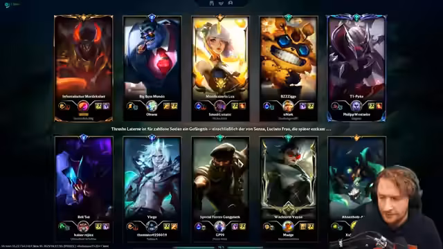 02:34:48Zu Beginn des Streams konzentrieren sich die Kommentare auf die Champion-Picks und frühe Spielprobleme. Ein Spieler hat sich als Bronzespieler angemeldet, kann aber dem Champion Kog'Maw (Koko) nicht bedienen. Dies führt zu Frustration und der Erkenntnis, dass ein Early-Surrender (FF) nötig sein könnte, da bereits zu viel Schaden im frühen Spiel entstanden ist. Die Gespräche drehen sich um die mangelnde Performance der Mitspieler und den Zwang, in einem bereits verlorenen Spiel weiterzumachen.
