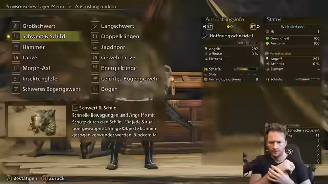 00:04:34Ein zentraler Punkt des Streams ist die genaue Untersuchung der Kampfmechaniken, insbesondere die Konterfunktion (Guard-Counter), die bei perfektem Block automatisch Ausführungsschläge auslöst und erheblich mehr Schaden verursacht. Gleichzeitig kämpft der Streamer intensiv mit der ungewohnten Steuerung, die im Vergleich zu Souls-like-Spielen sehr anders ist. Die Suche nach dem Fokusmodus für das Zielen und die Konfiguration des Controller-Layouts, insbesondere das Wechseln der Rolltaste von B auf A, nimmt viel Zeit in Anspruch und wird als problematisch und ungenügend beschrieben.
