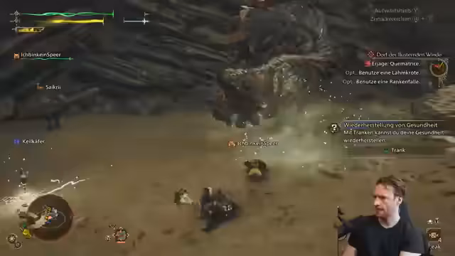 02:57:58Der Kampf gegen kleine Monster wird weitergeführt. Der Streamer entdeckt Taktiken wie das Wundemaximieren, um den Schaden auf kürzeste Distanz zu maximieren, und nutzt Parrys und Konter. Die Funktion von Gruppeneffekten wie 'Jäger und Sammler' wird kurz erwähnt. Die Steuerung mit dem Controller wird weiterhin als unkomfortabel empfunden, und der Streamer stellt fest, dass das Spiel sehr grindintensiv ist, um alle Materialien für eine Rüstung zusammenzubekommen.