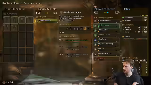 00:18:26Nachdem grundlegende Kämpfe absolviert wurden, konzentriert sich der Streamer auf das Ausrüstungssystem. Er stellt fest, dass verschiedene Rüstungssets unterschiedliche Boni bieten, wie z. B. zusätzliche Schadensresistenzen oder Gruppenfähigkeiten. Die Herstellung von Ausrüstung und Waffen wird ausgiebig getestet. Die Charakterentwicklung erfolgt über Fähigkeiten wie Botaniker, Geologe und Schmied, die passive Boni und aktive Fertigkeiten wie schnelles Schärfen von Waffen freischalten.