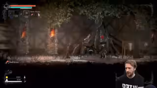 00:40:27Es wird die Fähigkeit Redigo Brand entdeckt, die es ermöglicht, das Spiel verkehrt herum zu spielen. Ein Silverleaf wird gefunden. Es wird ein versteckter Bereich entdeckt, der durch Springen erreichbar ist. Der Streamer kehrt zurück und bleibt verkehrt herum, bis die Wirkung aufhört. Es wird eine Falle entdeckt, die einen Schuss auslöst, wenn man über ein Seil geht. Der Alchemist wird erneut aufgesucht, da er Bosswaffen herstellen kann. Es werden viele Trapwires entdeckt. Der Streamer kehrt zum Anfang des Spiels zurück und besiegt die Gegner, die ihn zuvor besiegt hatten. Es wird überlegt, Spellcaster oder Prayer zu spielen. Es wird ein Crystal-Ding benutzt, um Anhänger des Super Trees zu werden. Der Streamer gradet und haut ab. Es wird festgestellt, dass das Spiel sehr Metroid-iges ist und man alles von vorne angucken muss. Es wird ein Pillar zum Umdrehen gesucht.