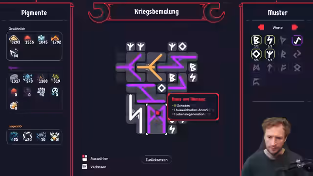 02:04:07Es wird über verschiedene Runen und deren Effekte diskutiert. Einige Runen werden als ungeeignet aussortiert, während andere, wie solche mit erhöhtem Beschwörungsschaden oder Lebensreinigung, zunächst in Betracht gezogen, dann aber verworfen werden. Der Fokus liegt auf der Optimierung des Builds, wobei Feuerschaden als weniger effektiv angesehen wird. Es gibt Schwierigkeiten, die passende Taste für den Rucksack zu finden, was als Designfehler kritisiert wird. Blitzbild wird als Option getestet, während Auraschaden und Sammelradius als nützlich erachtet werden. Die Frage nach der Definition von Fernkampfschaden wird aufgeworfen und durch Ausprobieren gelöst. Angriffsgeschwindigkeit und Kälteschaden werden als positiv bewertet, während Explosivschaden zunächst unklar ist. Es wird eine Entscheidung getroffen, eine hässliche, aber effektive Rune zu verwenden, um den Schaden zu erhöhen. Das Ziel ist es, entweder einen Full-Normal- oder Full-Blitz-Build zu erstellen, wobei betont wird, dass ein Gewinn ohne Metaprofession schwierig, aber nicht unmöglich ist.