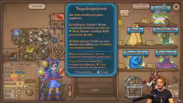 03:02:55Nach der Enttäuschung startet ein neuer Versuch mit einem komplett neuen Build. Der Fokus verlagert sich von reiner Heilung hin zu einer starken Waffe und der Generierung von Mana. Es werdenItems wie die Kreuzklinge ins Visier genommen und das Ziel, eine legendäre Waffe zu bekommen, steht im Mittelpunkt des neuen Spielplans.