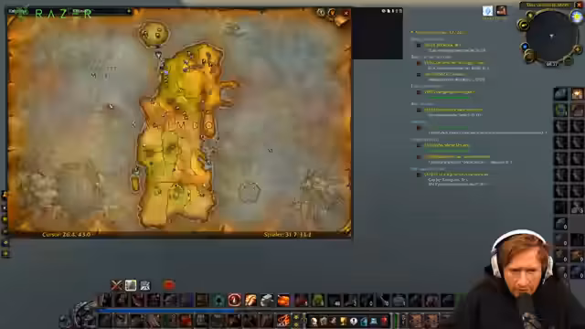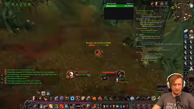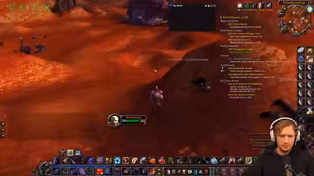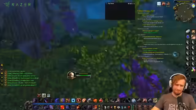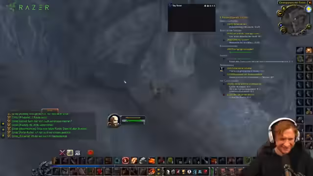 00:00:09Der Stream beginnt mit dem üblichen World of Warcraft-Grind. Der Streamer stellt fest, dass er wieder 75 Gold hat und fühlt sich reich. Er beginnt, sein Inventar aufzuräumen und stellt fest, dass er genug Thorium für ein neues Rezept hat, sowie reichlich Mithril und Vitriol, wofür er aber keine Verwendung mehr weiß. Die Mithril-Sammlung gilt ihm als tot. Gleichzeitig wird eine Lieferung von Vodafone erwähnt, deren Inhalt unklar ist.