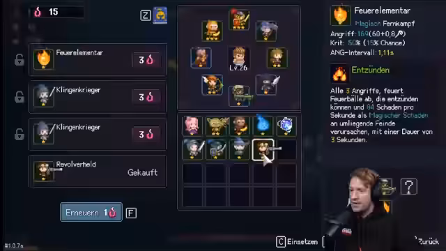 04:29:39Der Stream beginnt mit der Diskussion über die Entwicklung der Spielfiguren. Die Hauptfigur, der Litch, wird als magisch schadend beschrieben, während der Assassin aus Wolf und Affe zusammengesetzt wird und Infanteristen als Grundlage benötigt. Es wird betont, dass Items wie der Revolver auf Stufe 2 sein müssen und eine Bewegungsgeschwindigkeit von 40% essenziell ist, um überhaupt antreten zu können. Falsche Käufe und die damit verbundenen Fehler werden offen angesprochen und korrigiert.