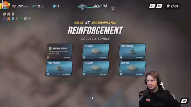 01:40:56Nach einer Reihe von挫折感 (Frustration) entscheidet der Streamer für einen Neustart, um mit gesammelten Kenntnissen neu zu beginnen. Es werden verschiedene Doktrinen und Upgrades getestet, wie z.B. 'On Reroll, Buildings gain damage', was als 'übel geil' eingestuft wird. Die Fokussierung auf Sturdy Bunkern und deren Synergien mit benachbarten Gebäuden wird zur zentralen Strategie. Zudem wird die Bedeutung von Upgrades analysiert, die für die nächsten Wellen entscheidend sein könnten, auch wenn die Kosten steigen.