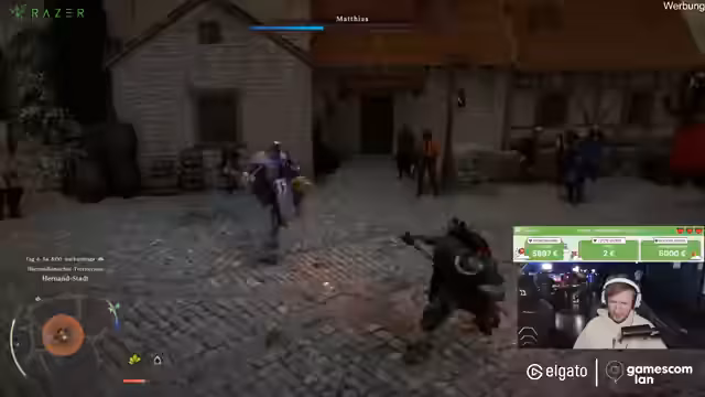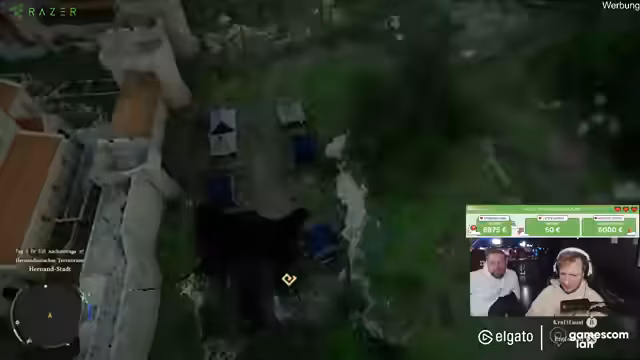 00:00:50Der Stream startet auf der Gamescom LAN zu ungewöhnlich früher Stunde, um welche 7 Uhr morgens, als die Halle noch sehr leer ist. Der Streamer befindet sich im Hotel und hat vergessen, seinen Controller mitzunehmen, was zu einer verzögerten Start führt. Nach einigen technischen Ladebildschirmen und einer kurzen Orientierung muss er sich erst mit der Steuerung des Spiels vertraut machen. Er entscheidet sich, einen Expresso zu trinken, um fit zu bleiben, und plant, bis 13 Uhr zu streamen.