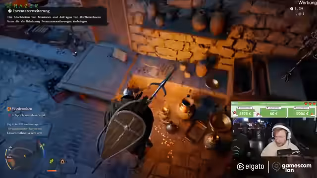 04:20:29Nach dem erfolgreichen Duell wird eine Belohnung in Form von Sack Silber und Erfahrungspunkten erhalten. Der Streamer sucht dann nach einem weiteren NPC für eine Quest, gerät aber in einen Kampf mit Banditen, bei dem er strategisch vorgeht und letztendlich einen Panzer als Rüstung verwendet. Er bemerkt, dass das Spiel ein sehr gutes Tutorial hat, aber der enorme Contentüberfluss zu Überforderung und Angst vor etwas zu verpassen (FOMO) führen kann.