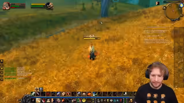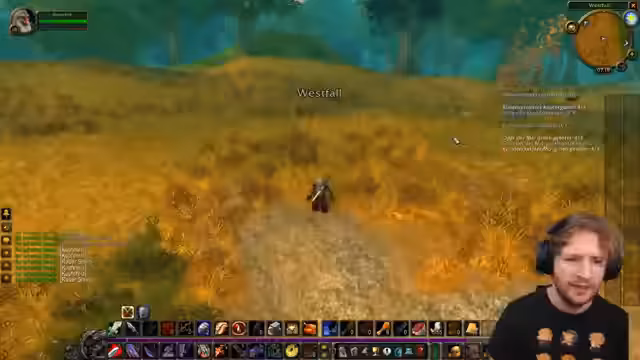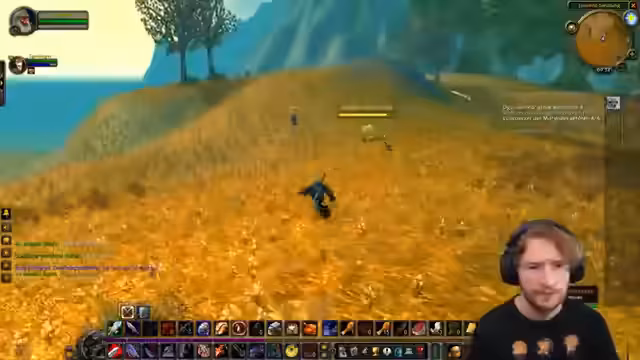 02:05:03Nachdem der Streamer eine Quest abgeschlossen und dafür 500 Erfahrungspunkte erhalten hat, muss er erneut zurückreisen, um mit jemandem zu sprechen. Er fragt Spellinger, ob sie heute die Oger im Kamm des Grauens besiegen können, ist aber unsicher, ob sie dafür bereit sind und schlägt vor, die Gruppe auf drei Leute aufzustocken. Er kommentiert die Tödlichkeit einiger Gebiete und muss eine Botschaft nach Stormwind bringen, wofür er fliegen möchte. Er stellt fest, dass er zu viele Quests hat und einige abarbeiten muss, bevor er neue annehmen kann. Er plant, nach Stormwind zu gehen, um einige Dinge zu erledigen und bereitet sich auf das Hardcore-Projekt vor, das tägliches Fischen, Kochen, Erzabbau, Schmieden und Questen mit viel Laufen beinhaltet. Er demonstriert humorvoll seine 'Marsch'-Bewegungen auf dem Laufband und versucht, ein Makro für das 'Follow'-Feature zu erstellen, um Spellinger automatisch zu folgen, was sich als überraschend effektiv erweist.