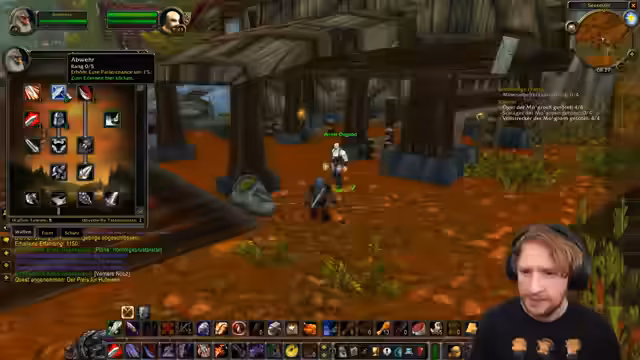 01:27:48Der Streamer stellt fest, dass sein Quest-Log voll ist und er zuerst einige Quests abschließen muss, um neue annehmen zu können. Er sucht nach grauen Quests, um sie abzubauen, und versucht, eine 'dunkle Bedrohung'-Quest abzuschließen. Er beschließt, einfach loszuziehen und Mobs zu töten in der Hoffnung, dass dies eine seiner aktiven Quests voranbringt, da er keine Quests abbrechen möchte, die er bereits angenommen hat. Er tötet verschiedene Kreaturen wie Schweine und Welpen, stellt jedoch fest, dass dies nicht die gewünschten Questfortschritte bringt. Er ist frustriert über die mangelnde Klarheit bezüglich der Questziele und die fehlenden orangenen Anzeigen für Quest-Mobs. Er tötet Spinnen und Taranteln, ohne Erfolg, und kommentiert humorvoll die 'Dummheit' des Chats, der ihm keine klugen Ratschläge gibt. Er entdeckt schließlich, dass er 'Bastarde' töten muss und kämpft gegen mehrere Gnolle, wobei er seine Kampfstrategien und kritischen Treffer kommentiert.