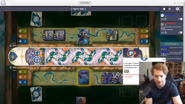 04:55:18Maxim beginnt mit der Erklärung des Spielprinzips des Sammelkartenspiels und hebt hervor, dass es sich von anderen Trading Card Games abhebt. Er erwähnt die Trade Mechanic als besonders wild. Das Spiel ist über die Webseite Board Game Arena spielbar, wo man zwischen rundenbasiertem Spiel und Echtzeit wählen kann. Ein Tutorial wird durchgespielt, um die Grundlagen zu erklären. Das Ziel des Spiels ist, dass sich Held und Companion treffen, wobei Geländekarten eine wichtige Rolle spielen und einen RNG-Faktor ins Spiel bringen. Mana wird für das Ausspielen von Karten benötigt, und zu Beginn des Spiels müssen Karten in Mana umgewandelt werden. Es gibt verschiedene Phasen wie Morgen, Mittag und Nachmittag, in denen unterschiedliche Fähigkeiten aktiviert werden können. Der Gegner hat eine Nun-Karte, die ihm einen Vorteil verschafft. Das Spiel basiert auf abwechselnden Zügen, wobei Quick Actions unendlich oft ausgeführt werden können.