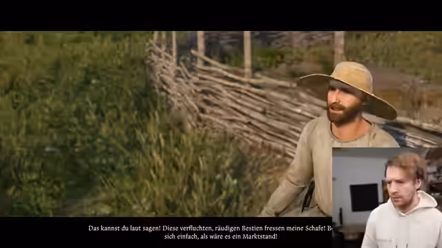 03:56:18Der Streamer kehrt nach Hause zurück und stellt Seiten her. Er trifft auf eine Gruppe Männer und kämpft gegen sie. Sein Hund Köter hilft ihm dabei. Er besiegt die Gegner und lootet sie. Er nimmt verschiedene Gegenstände mit, darunter einen Kriegshammer, eine Nagelkeule, eine Jagdarmbrust und Geld. Er fragt sich, ob sein Hund gestorben ist und wie er sich besser um ihn kümmern kann. Er reduziert die Bevölkerung der Gegend dramatisch und tötet viele Leute. Er bemerkt, dass Warehouse Studio auf YouTube antwortet und lobt den Roleplay-Aspekt des Spiels. Er füttert seinen Hund mit ekligem Fleisch. Er beantwortet die Frage, ob sich das Spiel für den Preis lohnt, und bejaht dies. Er schlachtet einen Adeligen aus und nimmt seinen Sattel mit. Er überlegt, was ein Pferd kostet und ob er es sich leisten kann. Er fragt nach Tipps zum Tragen von mehr Gegenständen und erwähnt einen Skill, den man erhöhen kann. Er redet mit dem Sohn eines Charakters im Spiel und verkauft Sachen. Er repariert eine kaputte Klampfe. Er bekommt eine Quest von einem Förster, Wilderer zu finden. Der Förster will, dass die Wilderer nicht sterben und dass man mit ihnen reden kann. Der Streamer muss zum Scheißhaus und räuchert Käse. Er ist immer noch überladen und hat keine Lagerkiste. Er ist maßlos überfordert und will zum Schmied gehen, um den Sattel loszuwerden. Er findet die Questlösung von dem Förster sehr gut gemacht. Er hat Angst vor Hunger und nimmt zu viel Essen mit. Er redet mit dem Schmied und will Sachen verkaufen, um Geld zu bekommen. Das Pferd bringt ihm noch nichts, weil er den Sattel noch braucht. Er will wissen, wie viel schneller er rennen kann. Er hat eine Krankheit und kann nicht aufhören, Sachen mitzunehmen. Er ist leicht kleptomanisch und arm. Er hat Kreuzheben nicht ausgewählt und das war ein Fehler. Er levelt Stärke, wenn er viel überladen ist. Er sieht einen Blitz und hört den Donner verzögert. Er nähert sich dem Schmied und fragt sich, ob die Leute, die er sieht, Wachen oder böse Männer sind. Er hat WoW-Vibes. Er isst zu Mittag. Er nimmt das Loot mit, um seine Stärke zu erhöhen. Er geht zum Schmied und springt über ein Hindernis. Er sieht Leute essen. Er hat noch nicht mal alles verkauft und ist ein Loothorder. Er nimmt Altmetall mit und Frankfurter Stahl. Er ist total überfordert und weiß nicht, ob das, was er tut, besser ist. Er sucht seinen Pferdesattel. Er macht das jetzt mit Maus und Tastatur. Er nimmt die Axt als Zweitwaffe mit, die Armbrust und die Bolzen. Er will Tiere jagen. Er drückt zu viel E und nimmt zu viele Gegenstände mit. Er hat keinen zweiten Waffenslot, weil ihm ein Gürtel fehlt. Er macht Inventar-Management privat.