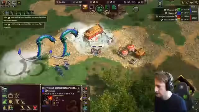 04:51:32Zu Beginn des Streams konzentriert sich der Streamer auf das Game Age of Mythology, wo er seine Einheiten strategisch einsetzt. Er versucht, mit einer 'Full Zap'-Taktik voranzukommen und bemerkt die schnelle Bauweise seines Gegners 'Sepp'. Der Streamer plant, den Gegner mit gezielten Attacken in die Zange zu nehmen, während er seine Ressourcen clever einsetzt, um seine Basis auszubauen. Er zeigt sich dabei etwas verwirrt über die schnelle Entwicklung des Gegners, passt sich aber schnell der Situation an.