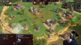 04:59:00Der Streamer wechselt zwischen verschiedenen Spielen und Themen. Er diskutiert über die Steuerung von Age of Mythology auf Konsolen und stellt fest, dass es gewöhnungsbedürftig sei, aber funktioniere. Außerdem spricht er über das kommende Spiel 'It Takes Two' und dessen Veröffentlichungszeitpunkt. Im Hauptspiel setzt er seine Strategie fort, versucht, die Wirtschaft seines Gegners zu schwächen und setzt dabei auf gezielte Angriffe und den Einsatz von Spezialfähigkeiten, um Vorteil zu erzielen.