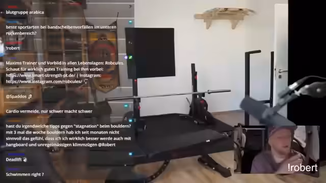00:57:02Streamer beantwortet die Frage, ob sich ein Laufband fürs Home Office lohnt. Theoretisch kann man damit Kalorien verbrennen, aber der Hauptteil beim Abnehmen ist die Ernährung. Wenn man viel Sport treibt, hat man oft mehr Hunger und füllt die Kalorien wieder auf. Man wird zwar kardiovaskulär fitter, aber nimmt nicht zwangsläufig ab. Laufband kann aber helfen, inaktive Phasen durch Bewegung zu unterbrechen.