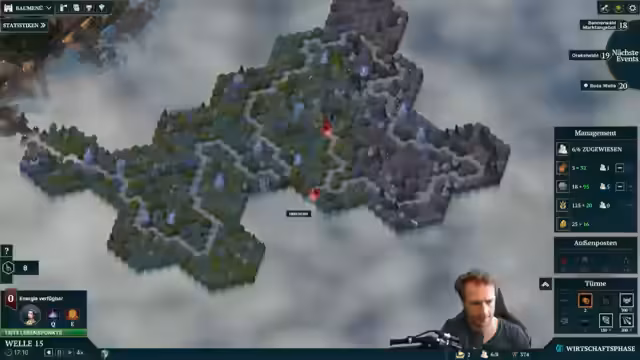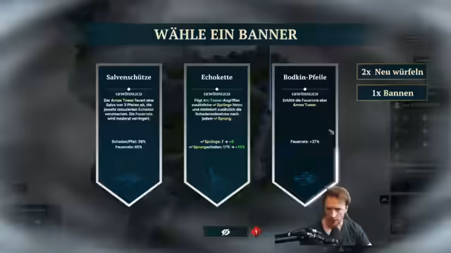 02:58:17Der Stream wechselt zu einem neuen Spiel, dem Roguelike Tower Defense 'Nordhold'. Er beginnt im Tutorial und baut erste Türme, wie einen 'Aerotower' und 'Arrow Tower', und erklärt deren Level-Up-Mechanik. Wichtig ist die Ressourcenmanagement-Phase, in der Arbeiter zur Produktion von Holz, Gold und Stein entsendet werden. Er entscheidet sich für den Fokus auf Arbeiter, um die Wirtschaft am Anfang zu stärken.