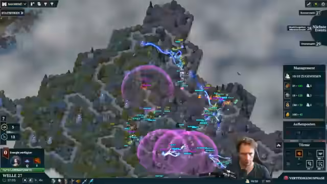 03:27:15Der Streamer wählt eine Belohnung und bemerkt, dass das Spiel die Belohnungen jetzt noch einmal anzeigt. Er sieht sich die Artefakte an und findet das Spiel perfekt. Er wählt ein gewöhnliches Banner für den ersten Turm, was er für richtig geil hält. Er wählt den Arc Tower und hofft auf maximale Gesundheit. Er wählt Eröffnungsblitz und überlegt, ob dies gut ist. Er bemerkt, dass er fast zwei Arbeiter hätte holen können. Er wählt Verruchtbarkeit, da die Kosten für die Einstellung von Arbeiten erhöht werden. Er wählt Erbschaft und beginnt mit einem Arbeiter mehr. Er hat übel viele Punkte und könnte seinen Startwert erhöhen, was er für übel geil hält. Er wählt den Frost Tower, der 50 Stein kostet. Er will wissen, was der Frost Tower macht. Er baut noch ein Haus mehr, weil er das eh braucht. Er spielt trotzdem, obwohl er einen dummen Fehler gemacht hat. Er guckt erstmal, wie gut der Blitz ist. Er findet es schwierig, die Entscheidungen zu treffen, was er will. Er findet es verwirrend, dass die Brauerei Bier braut, um die Taverne damit zu versorgen. Er erhöht die Bevölkerung um einen weiteren Platz. Er macht es noch mal so, weil er glaubt, dass der Turm sehr lange halten wird und sehr viele Waves alleine verteidigen kann.